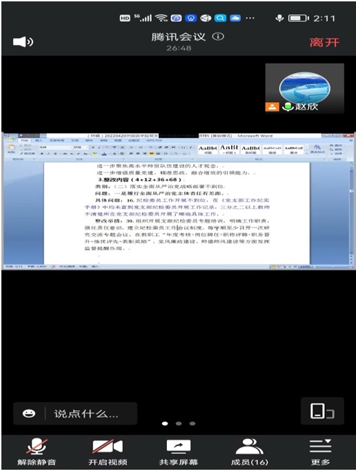 2022年4月20日,外國語學院分黨委組織開展全體黨支部紀檢委員專題培訓,會議采取線上形式,分黨委書記趙欣主持,各黨支部書記、紀檢委員參加。