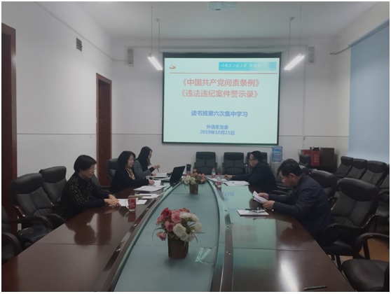 10月21日15:30,根據(jù)校黨委統(tǒng)一部署,外語系領(lǐng)導班子在41#樓417組織開展了“不忘初心、牢記使命”讀書班讀原文學原著第六次集中學習。集中學習由系黨委書記趙欣主持,班子成員陳巖、安沛旺、鄧曉明、王麗麗出席。