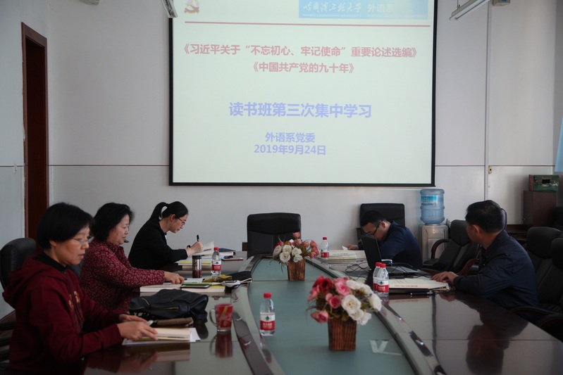 根據(jù)校黨委統(tǒng)一部署,外語系領(lǐng)導(dǎo)班子于9月24日14:00在41#樓417組織開展了“不忘初心、牢記使命”讀書班讀原文學(xué)原著第三次集中學(xué)習(xí)。集中學(xué)習(xí)由系黨委書記趙欣主持,班子成員全體出席。