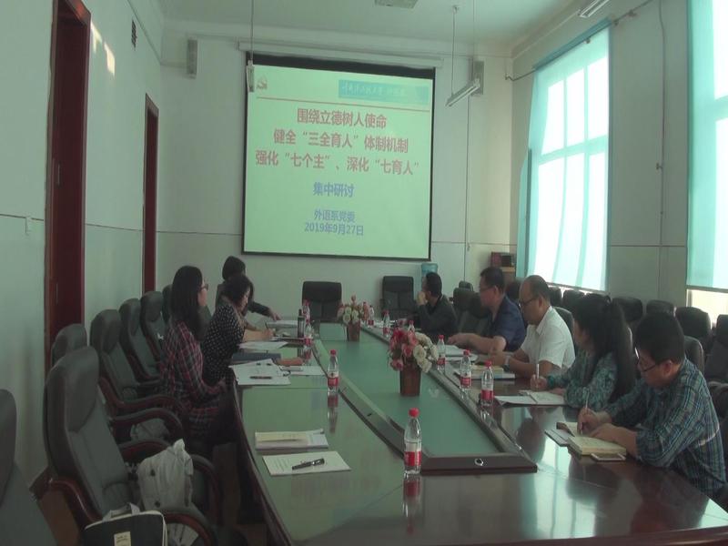 按照學(xué)校“不忘初心、牢記使命”主題教育集中學(xué)習(xí)計(jì)劃安排,外語(yǔ)系于9月27日在41#417組織班子成員圍繞“‘立德樹(shù)人’使命,健全‘三全育人’體制機(jī)制,強(qiáng)化‘七個(gè)主’,深化‘七育人’”開(kāi)展專題研討。專題研討由系黨委書(shū)記趙欣主持,班子成員全體參加,系黨委委員楊劍、范瑩芳、李麗、由春橋列席研討。