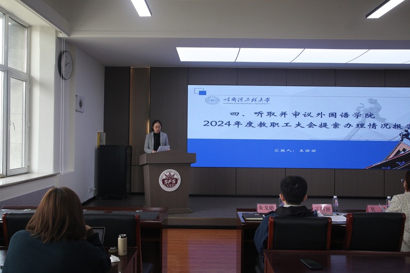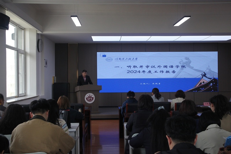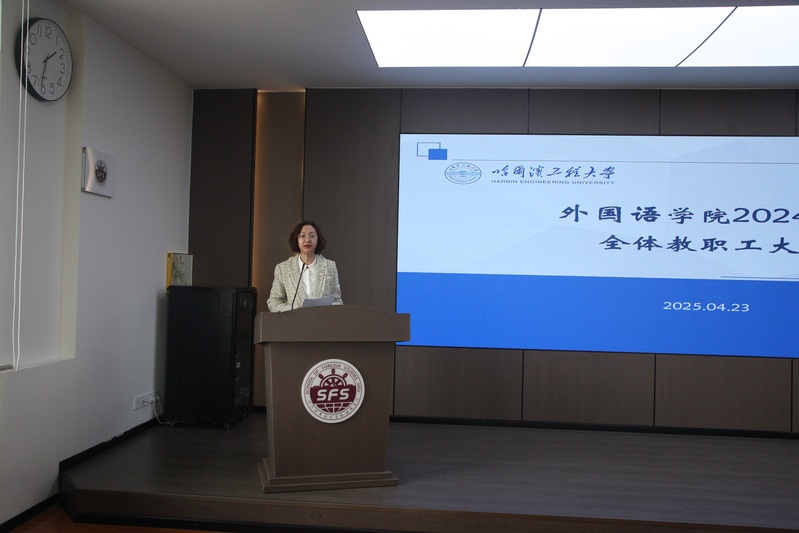 2025年4月23日下午,外國語學院在41號樓422報告廳舉行2024年度全體教職工大會。學院領導班子成員及全體教職工參加會議,會議由學院黨委書記吳越主持。