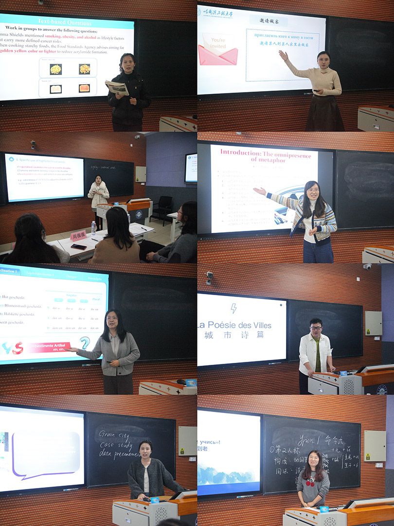 按照青年教師教學競賽流程和方案,每位參賽教師精心設計教學方案,依次進行10分鐘課堂教學展示。展示過程中,各位教師充分結(jié)合外語學科特色,以1個學時(45分鐘)為單位的教學設計為基礎,通過生動的語言表達、精心設計的教學環(huán)節(jié)、靈活運用的智慧教學工具,將學情分析、教學目標、重點難點突破等內(nèi)容融入課堂實踐,部分教師還創(chuàng)新采用情境教學、跨文化對比、小組互動等教學方法,有效調(diào)動 “課堂氛圍”,展現(xiàn)出鮮明的教學風格與先進的教育理念。