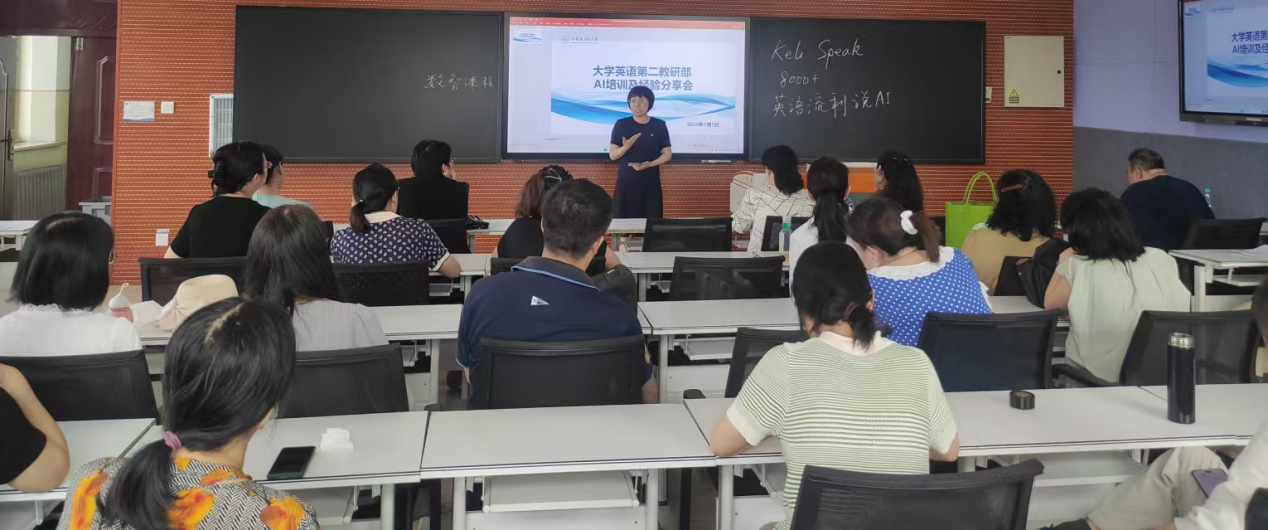 2025年7月1日,承擔(dān)2024級大學(xué)英語教學(xué)任務(wù)的近30位教師齊聚41#408教室,成功舉辦了“AI培訓(xùn)及經(jīng)驗(yàn)分享會”。基礎(chǔ)級負(fù)責(zé)人李子春、發(fā)展級負(fù)責(zé)人岳鐵艷和教研部主任王欣分別從各自級別的角度分享AI技術(shù)在英語教學(xué)與科研中的應(yīng)用實(shí)踐,帶來一場兼具理論深度與實(shí)操價(jià)值的專業(yè)分享。