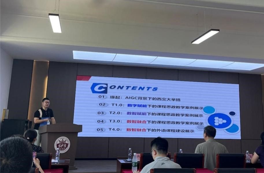 高洋教授以“構(gòu)建數(shù)智化育人新生態(tài):AIGC技術(shù)與外語課程思政的融合路徑探索”為題,深入探討了人工智能生成內(nèi)容(AIGC)在外語教學中的應用前景。通過《理解當代中國》系列教材的具體教學案例,生動展示了智能教學平臺在課程建設中的創(chuàng)新實踐模式。