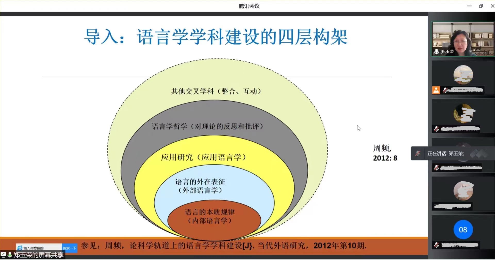 2022年4月25日由外國語學(xué)院學(xué)習(xí)部承辦的學(xué)術(shù)講座“學(xué)術(shù)無止境,吾輩當自強”在騰訊會議如期舉行。外國語學(xué)院鄭玉榮教授為2021級研究生做題為“Corpus,Language Learning and Research(語料:語言學(xué)習(xí)與研究)”的講座。講座包括三個部分:什么是語料庫,語料庫的主要應(yīng)用領(lǐng)域及如何在學(xué)習(xí)中應(yīng)用語料庫。