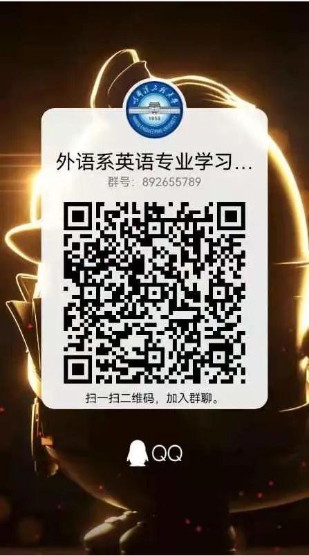 同學(xué)們可加入“外語(yǔ)系英語(yǔ)專(zhuān)業(yè)學(xué)習(xí)服務(wù)”QQ群,進(jìn)行在線(xiàn)答疑解惑,也可與外語(yǔ)系學(xué)生會(huì)學(xué)習(xí)部負(fù)責(zé)人胡珂(QQ號(hào):1611819625)聯(lián)系。