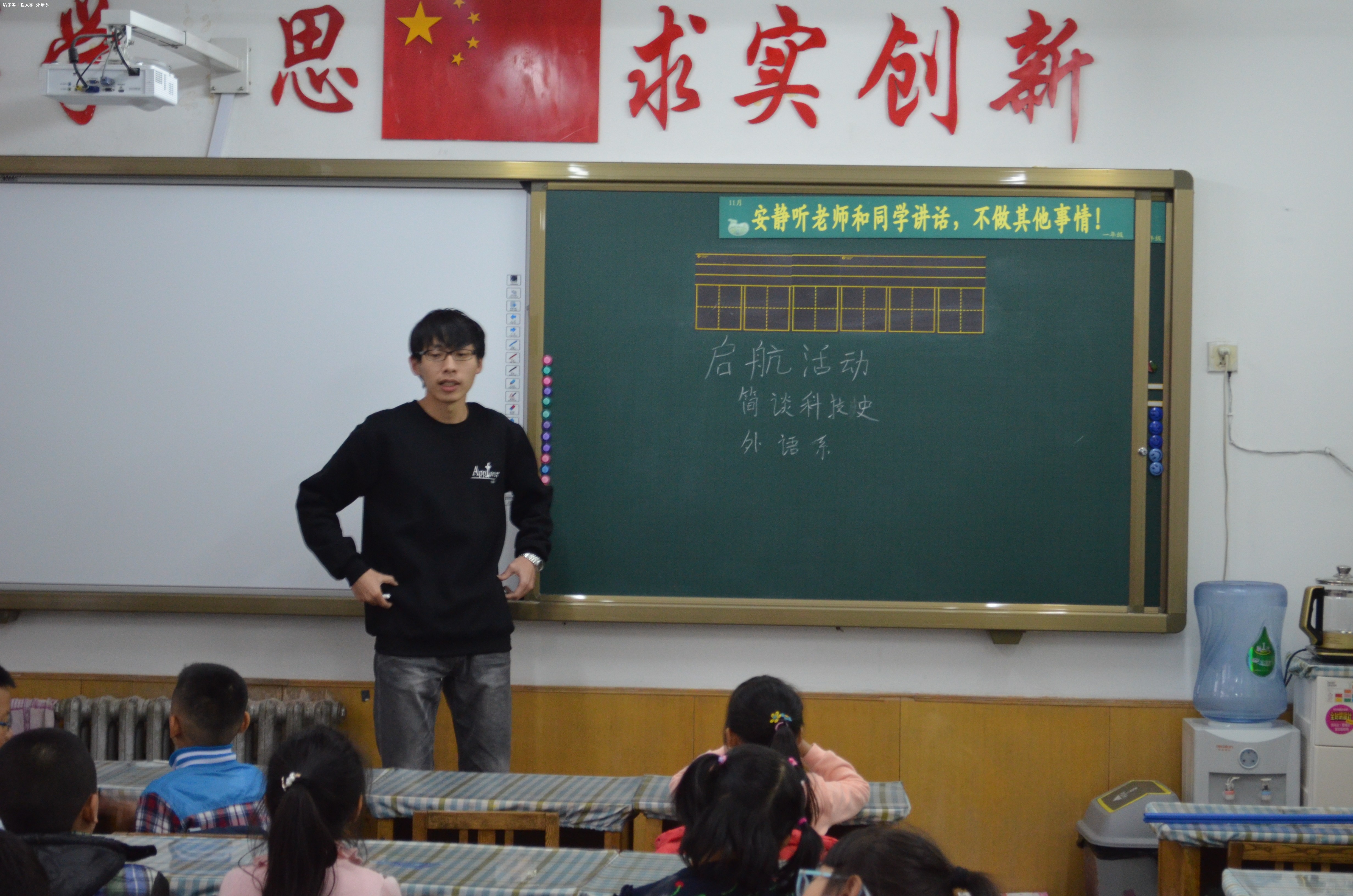 11月17日中午12:30,外語系科協(xié)參加了以“啟航行動”為主題的支教活動,在系青協(xié)副部付益鵬的組織下,外語系共有宋偉平、鐘偉業(yè)兩位同學(xué)參加此次活動。