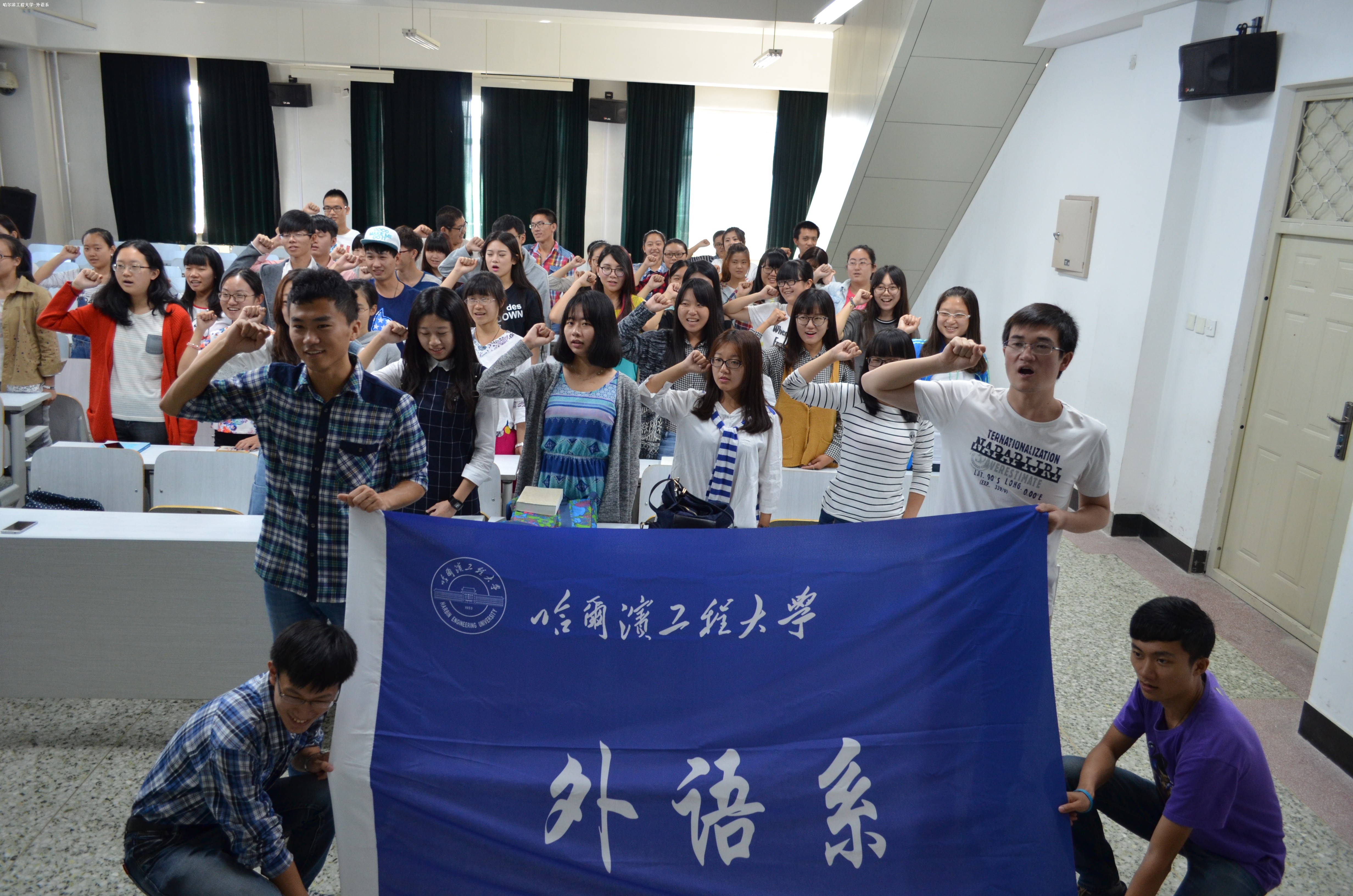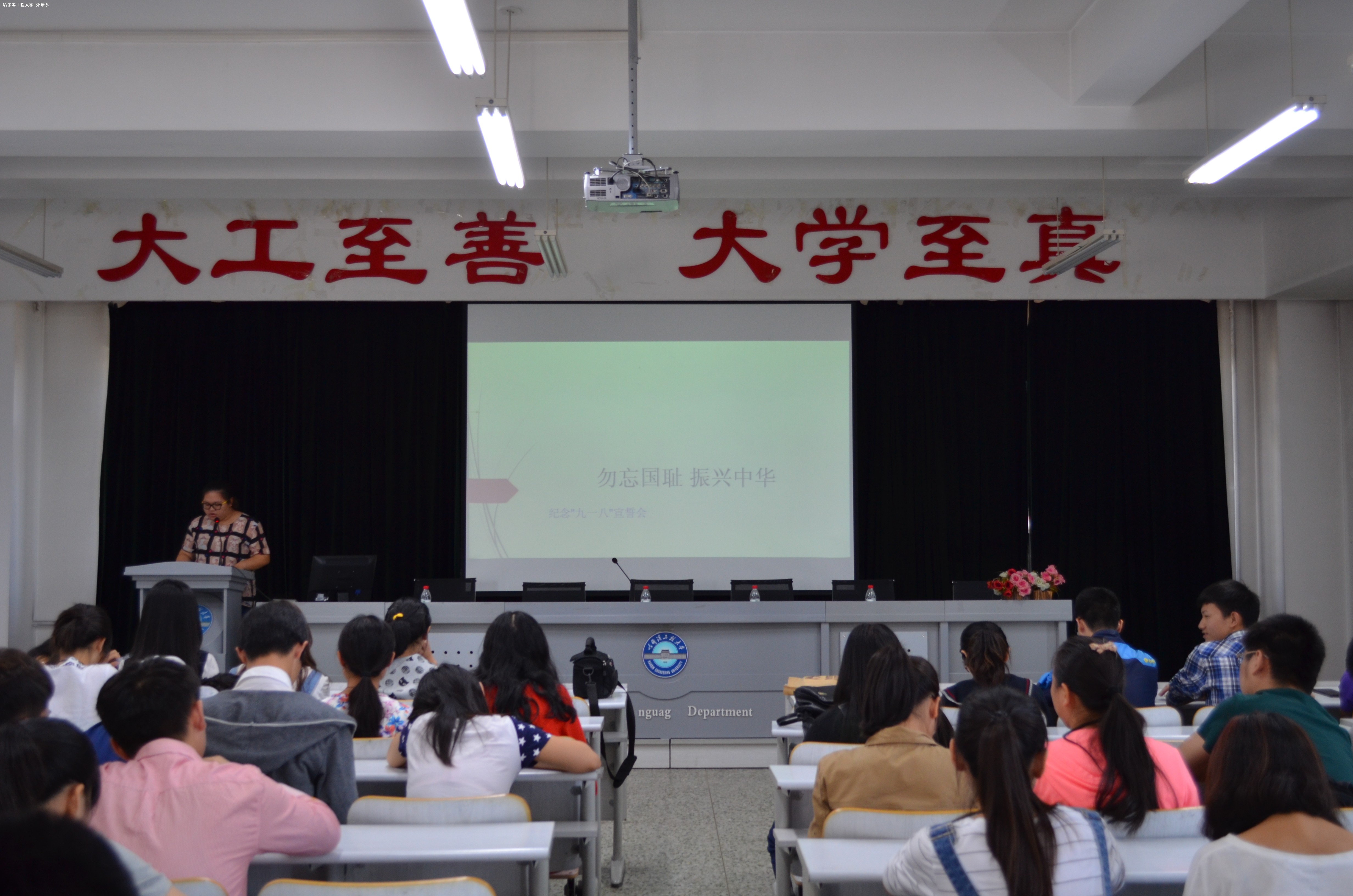 活動開始后,全體起立,奏唱國歌。隨后組織部部長帶領同學們回顧歷史,了解九一八事變經(jīng)過,了解中國人民曾經(jīng)遭受過的苦難,讓同學們知道如今的幸福生活來之不易,要珍惜現(xiàn)在的和平生活。活動進入高潮,全體起立,共同宣誓。最后伴隨著哈爾濱工程大學的校歌,此次活動結束。