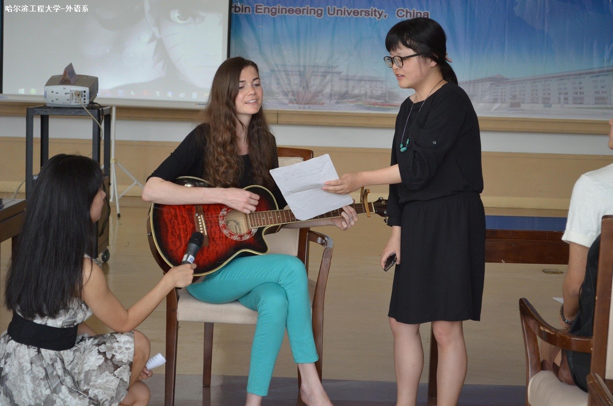 隨后,外語系黨委書記陳巖教授上臺致辭表達對畢業(yè)同學們的祝福,并寄予了由衷的期望,“而今邁步從頭越”,希望同學們昂首闊步地走出校門,迎接新的人生。最后,由外教Ruthy吉他伴奏,全體師生合唱《朋友》來祝福自己,祝福同窗。