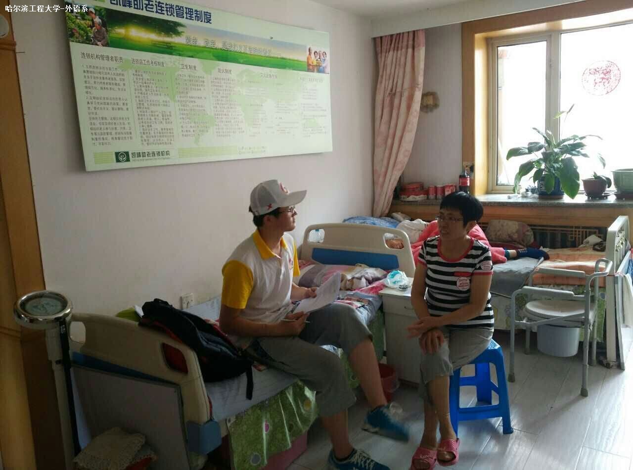 7月20日上午7時整,外語系暑期“三下鄉(xiāng)”社會實踐活動四個小分隊開始了第二天的“敬老助殘”旅程,先后走訪了道里區(qū)馨悅老年公寓、春華德善老年公寓、銀耀薈老年公寓、民生老年公寓、紅星助老家庭、夕陽紅老年公寓等20家敬老養(yǎng)老機構(gòu)。