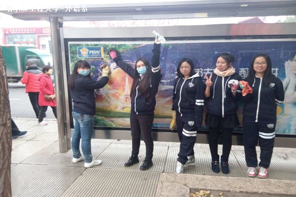 10月25日上午8時,外語系英才服務隊在校青協(xié)負責人的帶領下,拎著掃帚和抹布等清掃工具,浩浩蕩蕩的向南通大街各路站牌走去。此次活動是由校青協(xié)主辦,各系青協(xié)組織響應的主題月青協(xié)活動,意在將街頭垃圾清掃干凈,整潔擴散,從我校開始。