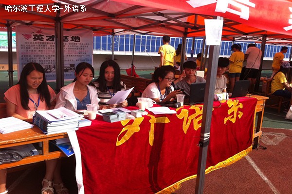 8月15日,上午7點(diǎn)40分,哈爾濱工程大學(xué)外語系在團(tuán)委學(xué)生會主要負(fù)責(zé)人的帶領(lǐng)下于北體育場順利展開了對2014級新生第二天的迎新工作。