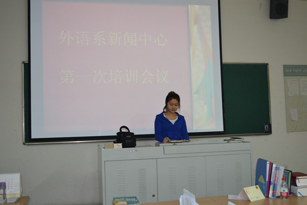 首先,姜孟簡要介紹了新聞撰寫的相關(guān)知識與技巧,并以幾則優(yōu)秀新聞為模板強調(diào)了新聞的客觀性和時效性。接著,她對新聞中心上學期的工作進行了總結(jié),在肯定成績的同時,她也指出外語系的新聞宣傳應更加注重人文魅力,工作人員的工作效率仍需進一步提高。