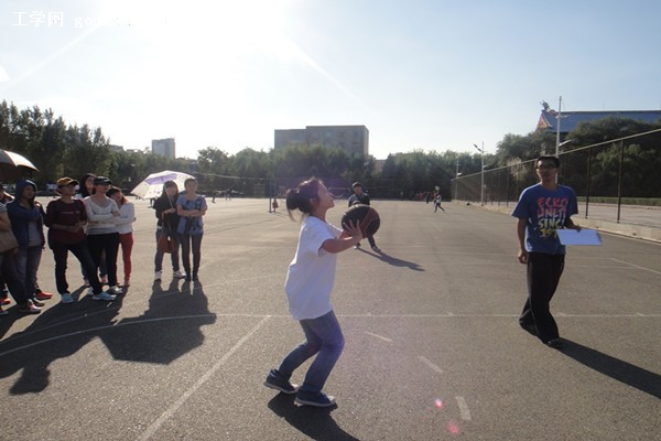 9月16日14:00,外語系全體女生準時來到軍工操場,為即將開始的外語系女生投籃比賽做好準備。