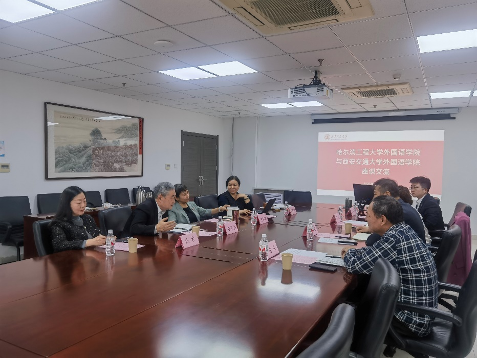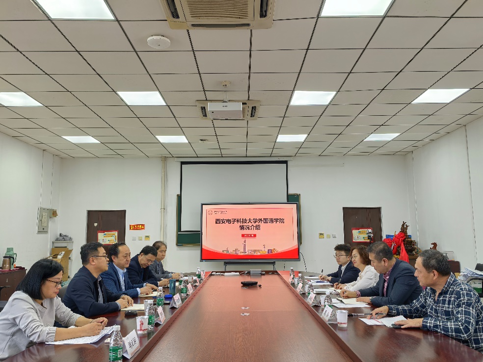 此次調(diào)研圍繞理工類院校外語(yǔ)學(xué)科建設(shè)與發(fā)展、公共外語(yǔ)教學(xué)改革、英語(yǔ)專業(yè)轉(zhuǎn)型與新文科建設(shè)、國(guó)際交流與人才隊(duì)伍建設(shè)、實(shí)驗(yàn)室建設(shè)等問題展開。三所高校外語(yǔ)學(xué)院的領(lǐng)導(dǎo)和負(fù)責(zé)同志分別分享了各學(xué)院在以上領(lǐng)域的建設(shè)舉措與發(fā)展成效。在調(diào)研期間,外國(guó)語(yǔ)學(xué)院一行還參觀了西安電子科技大學(xué)的AI+教育中心、口筆譯實(shí)驗(yàn)室與多媒體教學(xué)中心。