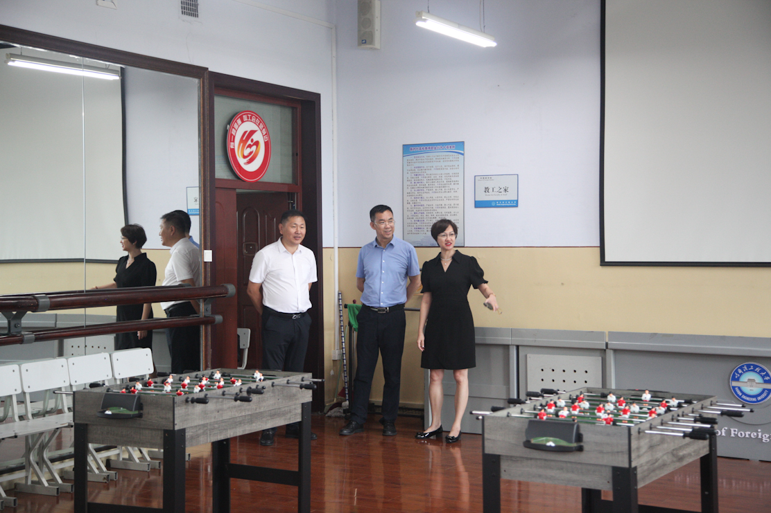 在學(xué)院領(lǐng)導(dǎo)陪同下,姚震走訪了外國語學(xué)院多媒體語言實驗中心、圖書資料室、云終端教室、普通智慧型教室、機(jī)輔翻譯實驗室、學(xué)術(shù)報告廳、教工之家等。詳細(xì)了解各教室的類型、功能、數(shù)量,老師教學(xué)及學(xué)生使用情況,并對學(xué)院“教工之家”的建設(shè)工作給予充分肯定。