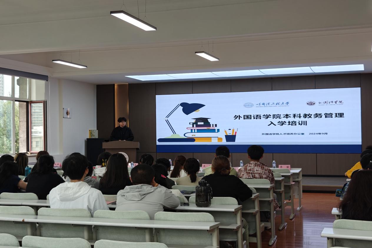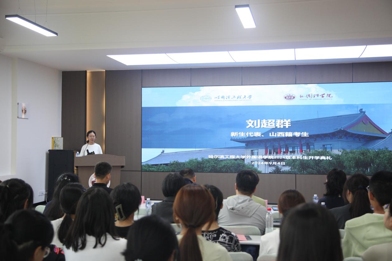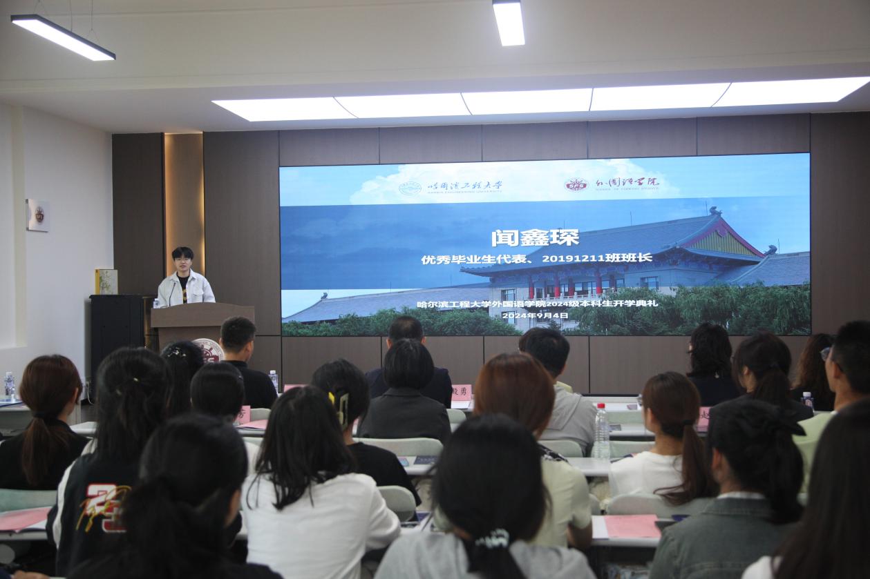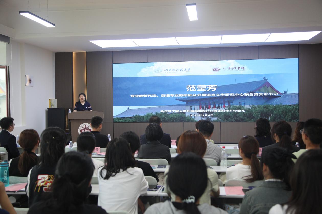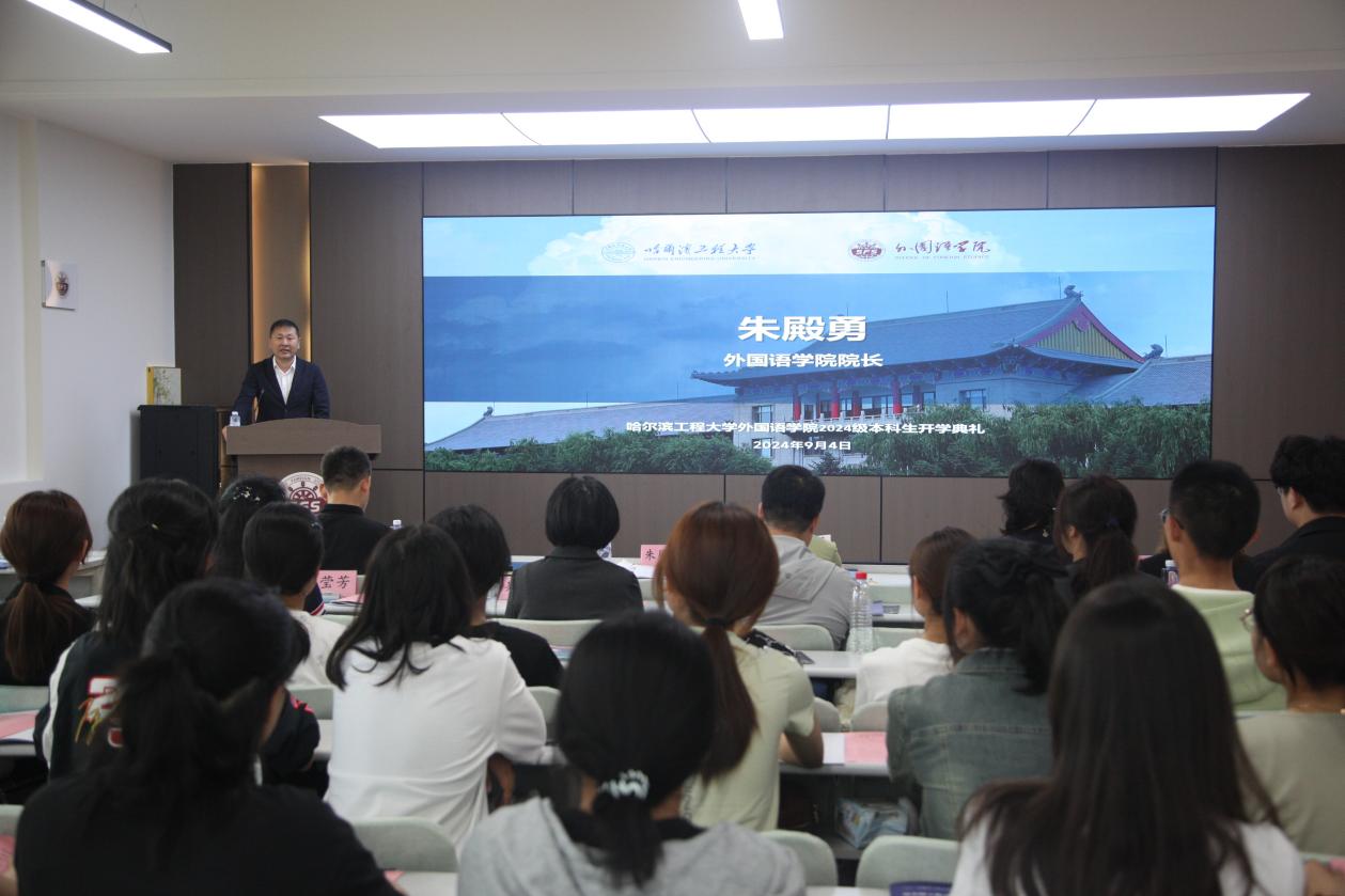 秋光為序,筑夢起航。9月4日上午,哈爾濱工程大學外國語學院2024級本科新生開學典禮在41號樓外國語學院學術(shù)報告廳舉行,49名英語專業(yè)本科新生參加典禮。