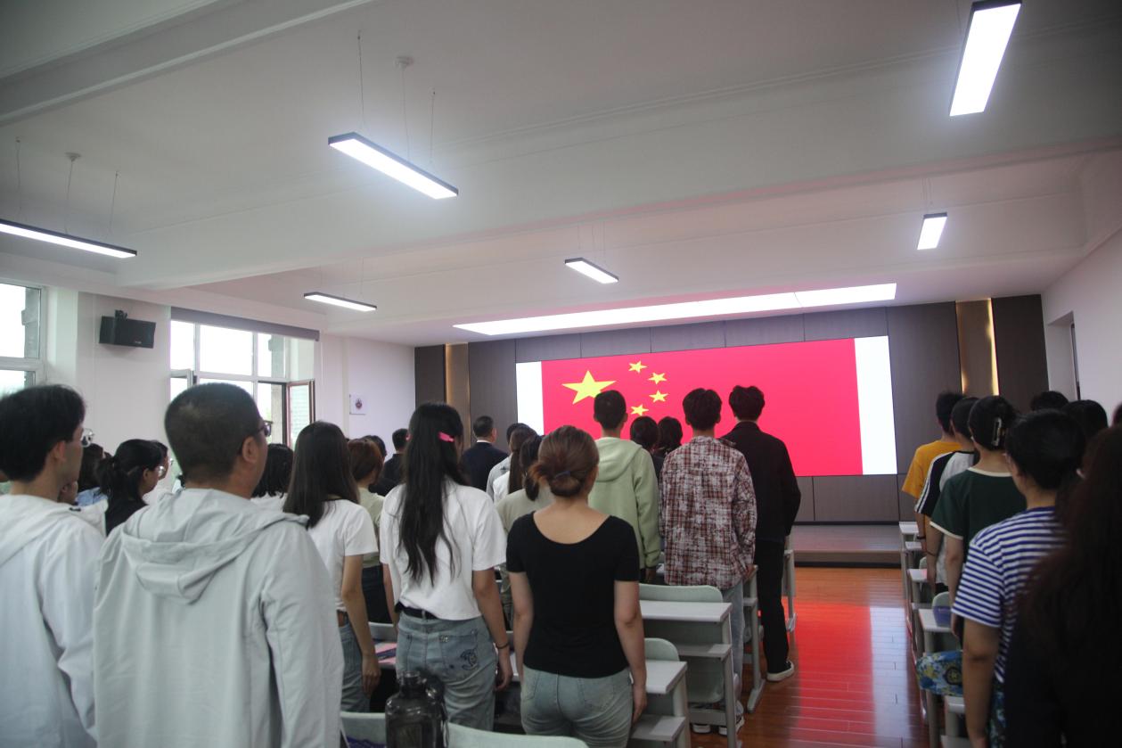 開學典禮開始,全體師生起立奏唱國歌。