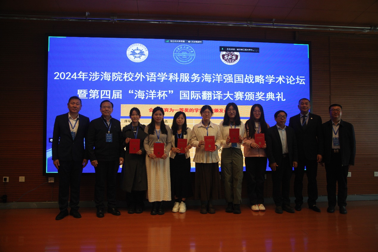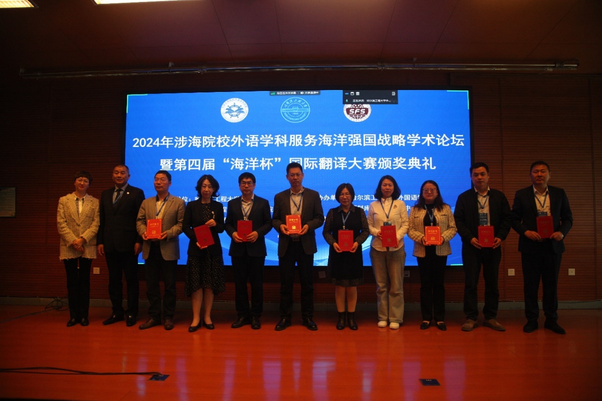 4月27日,由全國翻譯專業(yè)學位研究生教育指導委員會指導,全國13所涉海高校與上海世語翻譯有限公司等聯(lián)合發(fā)起2024年涉海院校外語學科服務海洋強國戰(zhàn)略學術論壇暨第四屆“海洋杯”國際翻譯大賽頒獎典禮在哈爾濱工程大學舉行。大會由哈爾濱工程大學主辦,哈爾濱工程大學外國語學院、上海世語翻譯有限公司承辦,外國語學院區(qū)域國別與翻譯研究中心協(xié)辦。全國翻譯專業(yè)學位研究生教育指導委員會副主任趙軍峰、秘書長張愛玲,哈爾濱工程大學校長助理尹航參加會議并致辭。中國涉海高校外語學科聯(lián)盟高校代表、第四屆“海洋杯”國際翻譯大賽獲獎學生及外國語學院師生參加會議。