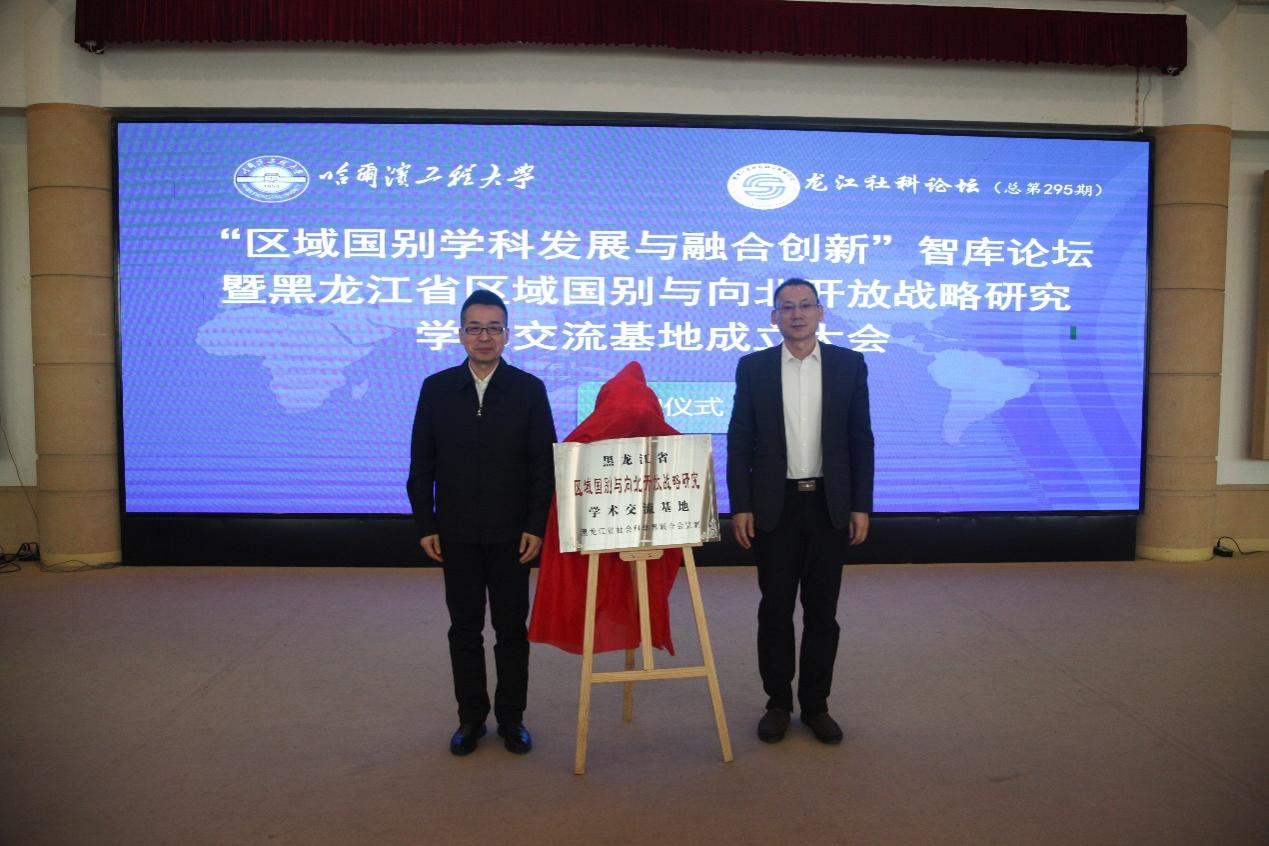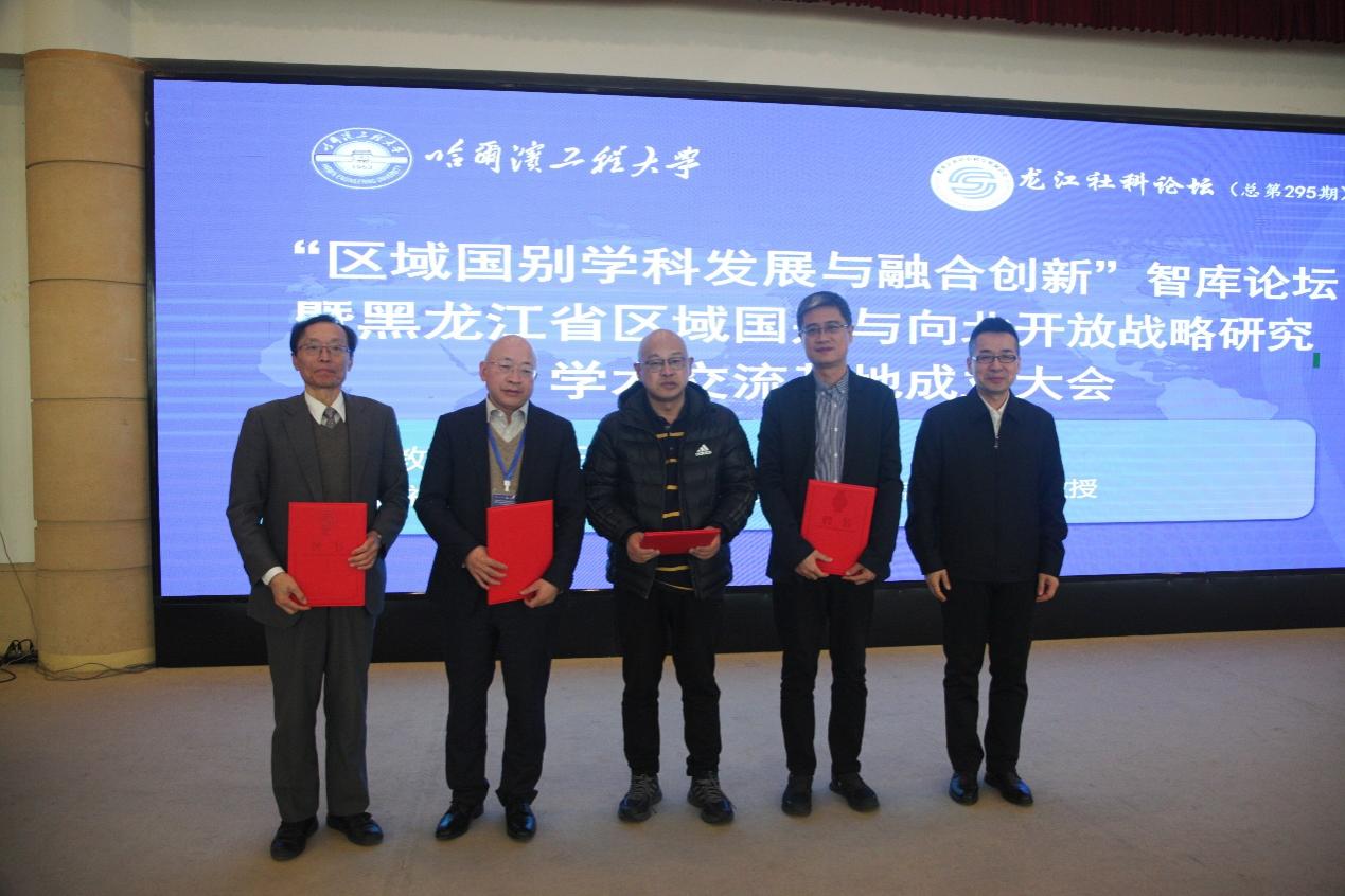 會上,黑龍江省區(qū)域國別與向北開放戰(zhàn)略研究學術交流基地舉行了成立揭牌儀式,王宏宇、呂冬詩共同為學術交流基地揭牌,并為客座教授頒發(fā)證書。