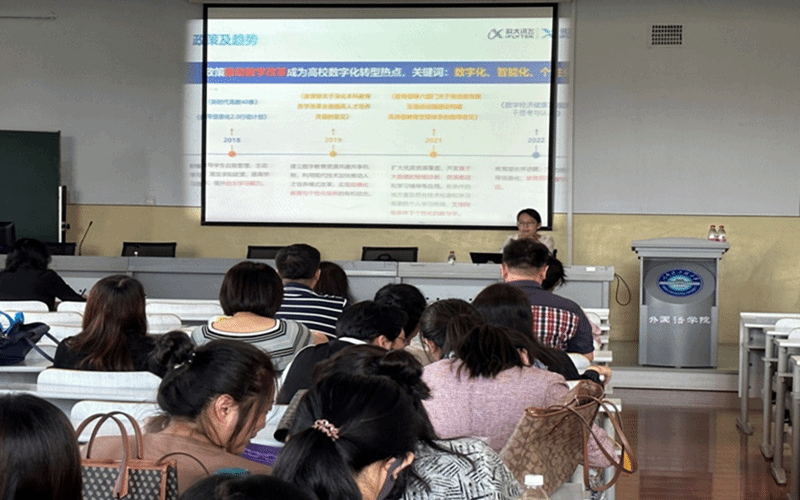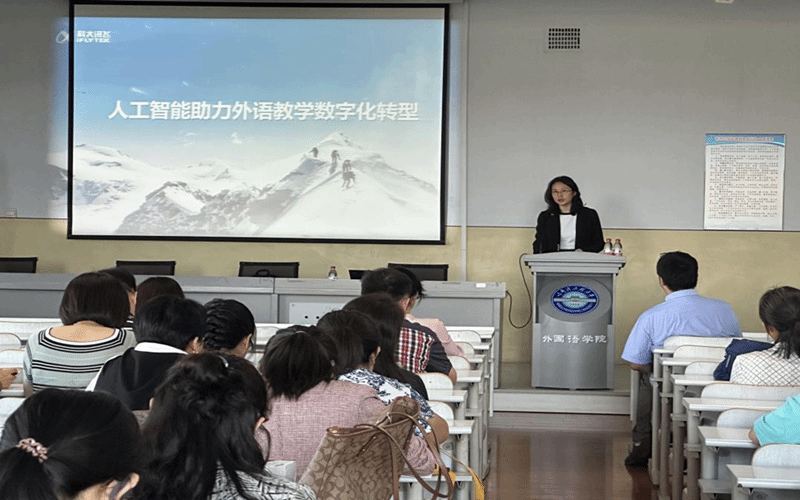 9月8日,外國(guó)語學(xué)院舉辦了“人工智能賦能外語教育教學(xué)數(shù)字化轉(zhuǎn)型”培訓(xùn)會(huì)。會(huì)議由外國(guó)語學(xué)院副院長(zhǎng)王麗麗主持,科大訊飛資深講師王玉澤主講,全院教師參加。