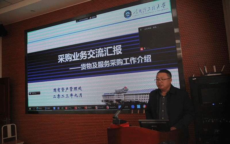 國有資產(chǎn)管理處呂宏明進行了采購業(yè)務專題培訓。呂宏明介紹了學校采購限額標準、采購方式與適用范圍、采購流程等重要內(nèi)容。