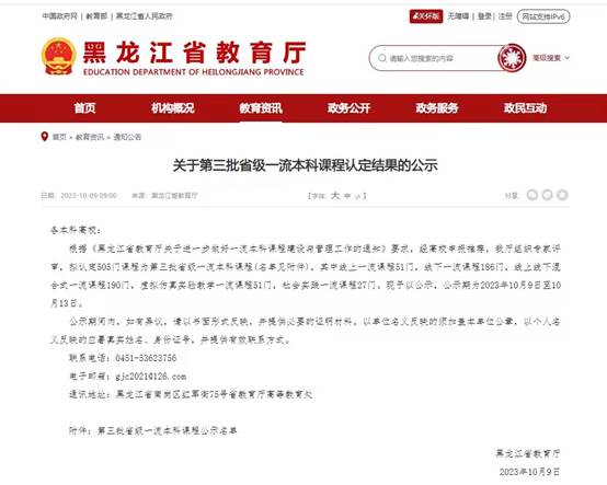 近日,黑龍江省教育廳公示了第三批省級(jí)一流本科課程認(rèn)定結(jié)果,外國(guó)語(yǔ)學(xué)院3門(mén)課程入選,其中張俊南副教授主講的《英語(yǔ)演講》入選線上一流課程、毛延生教授主講的《語(yǔ)言導(dǎo)論》入選線下一流課程,楊秀娟教授主講的《綜合英語(yǔ)(1-4)》入選線上線下混合式一流課程。