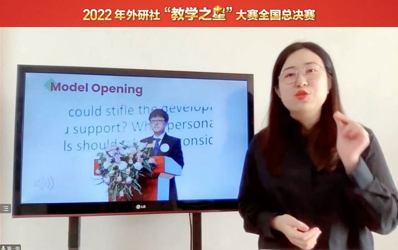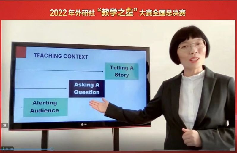 總決賽由教學(xué)設(shè)計(jì)介紹、課堂教學(xué)展示及現(xiàn)場(chǎng)問(wèn)答3個(gè)環(huán)節(jié)組成,我校參賽團(tuán)隊(duì)按國(guó)賽要求經(jīng)過(guò)近一個(gè)月時(shí)間精心準(zhǔn)備《英語(yǔ)演講教程》,深挖教材理念,聚焦中國(guó)綠色發(fā)展模式、舉措、成就,并結(jié)合世界地球日主題,設(shè)置學(xué)生演講任務(wù),實(shí)現(xiàn)外語(yǔ)教材到教學(xué)的貫通,達(dá)到思想性與科學(xué)性相統(tǒng)一。吳源、李可欣兩位老師現(xiàn)場(chǎng)課程教學(xué)展示環(huán)節(jié)設(shè)計(jì)新穎,將課前任務(wù)與課上理論知識(shí)講解有機(jī)融合,激發(fā)學(xué)生學(xué)習(xí)內(nèi)驅(qū)力,并將學(xué)生演講練習(xí)與多維評(píng)估緊密結(jié)合,提升學(xué)生思辨能力與跨文化交際能力,培養(yǎng)學(xué)生的國(guó)際視野、家國(guó)情懷和文化素養(yǎng);現(xiàn)場(chǎng)問(wèn)答環(huán)節(jié),回答精準(zhǔn)、流利、完整、重點(diǎn)突出,展示出一流專業(yè)教師團(tuán)隊(duì)的素質(zhì)和水平。團(tuán)隊(duì)在省賽中取得全省外語(yǔ)金課團(tuán)隊(duì)大賽特等獎(jiǎng),并作為黑龍江省唯一晉級(jí)全國(guó)總決賽團(tuán)隊(duì),最終在2022年外研社“教學(xué)之星”大賽全國(guó)總決賽上獲得季軍。