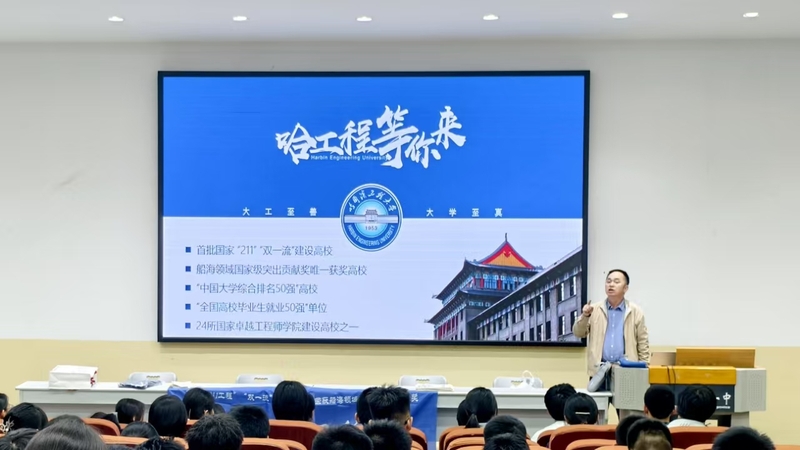 外國(guó)語(yǔ)學(xué)院王慶忠教授為學(xué)生開(kāi)展了一場(chǎng)《哈工程等你來(lái)》主題宣講。宣講過(guò)程中,王教授向?qū)W生介紹了哈爾濱工程大學(xué)的獨(dú)特魅力:從傳承“哈軍工”的紅色基因,到“三海一核”(船舶工業(yè)、海軍裝備、海洋開(kāi)發(fā)、核能應(yīng)用)的鮮明辦學(xué)特色;從服務(wù)國(guó)家海洋強(qiáng)國(guó)戰(zhàn)略的使命擔(dān)當(dāng),到船舶與海洋工程、核科學(xué)與技術(shù)等學(xué)科在全國(guó)的領(lǐng)先地位,深度參與航母、核潛艇等國(guó)之重器的研制開(kāi)發(fā)。王教授表示,希望同樣流淌著紅色血脈的三晉學(xué)子能夠與哈爾濱工程大學(xué)一道,為祖國(guó)的國(guó)防科技事業(yè)貢獻(xiàn)青春力量。