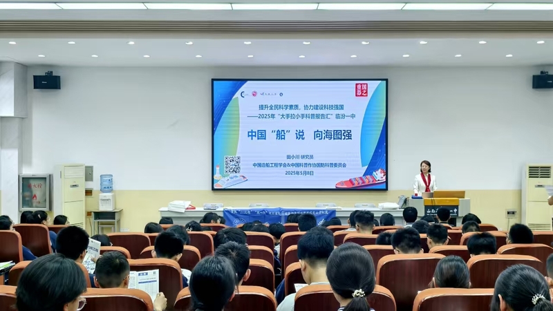 在3號(hào)階梯教室,中國(guó)造船工程學(xué)會(huì)首席專家田小川為臨汾一中的學(xué)生準(zhǔn)備了一場(chǎng)《中國(guó)“船”說(shuō) 向海圖強(qiáng)》科普講座。講座過(guò)程中,田教授結(jié)合哈爾濱工程大學(xué)“三海一核”辦學(xué)特色,通過(guò)講述幾代造船人的努力,我國(guó)造船“三大指數(shù)”(造船完工量、新接訂單量和手持訂單量)連續(xù)15年穩(wěn)居世界第一,詮釋中國(guó)船舶工業(yè)從追趕到領(lǐng)跑的科技密碼,以及大國(guó)重器研制背后的科學(xué)家精神,展現(xiàn)哈工程在服務(wù)國(guó)家重大戰(zhàn)略需求中的使命擔(dān)當(dāng)。