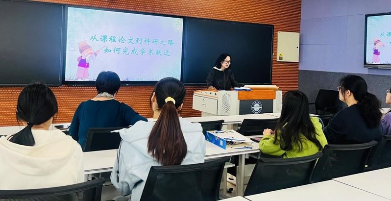 ?王盈副教授?以《從課程論文到科研之路:如何完成學(xué)術(shù)躍遷》?為題,詳細(xì)講解了如何將課程論文升級為高質(zhì)量學(xué)術(shù)成果。她提出“選題—寫作—升級—轉(zhuǎn)化”四步法,建議學(xué)生從課程框架尋找興趣點并刻意練習(xí)方法論,并重視每一次課程作業(yè),將其轉(zhuǎn)化為可發(fā)表的科研成果。